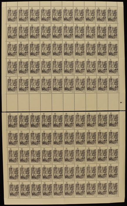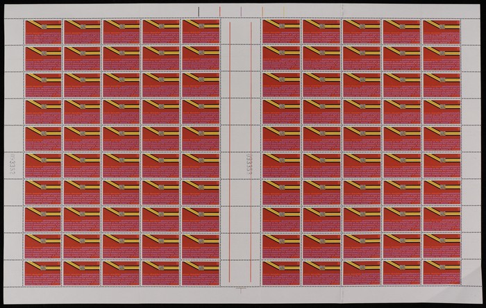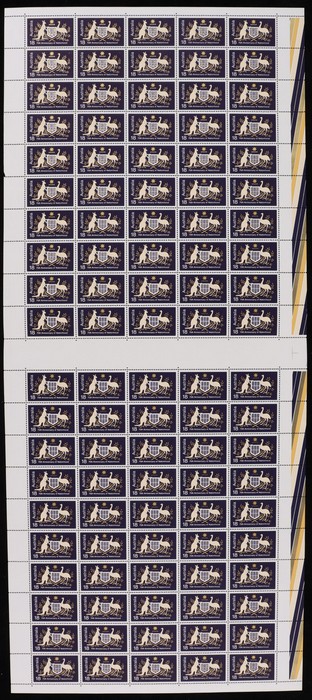 Die II sheet of 100, plated as Sheet A with colour bars at right. Fresh MNH. ACSC 733z/za cat $48. (Image1)
