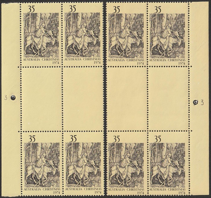 Plate number 3 at right with official printers paper repair to positioning pip then perf through! F-VF MNH. ACSC 681zc(var). Probably unique! (Image1) (Image2)