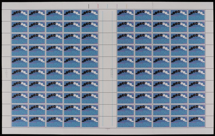 Radio Astronomy sheet of 100 with Autotrons at top, both sheet numbers & ACSC listed variety 'diagonal retouch over Astronomy' (Pos RP1/4). Fresh MNH. ACSC 706 d z za zb cat $95.