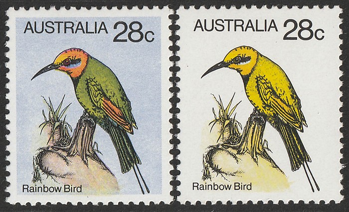 Rainbow Bird error violet-blue OMITTED - no background & bird is wholly yellow-green. VF fresh MNH. SG 735(var). ACSC 816c cat $400. Only 1 sheet was recorded. (P)