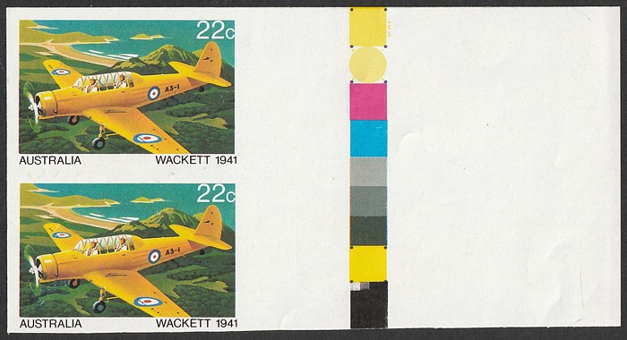 IMPERF right marginal vert pr, extra wide margin with colour bar. VF fresh MNH. Originates from the 2nd of only 2 imperf sheets recorded. SG 761(var). ACSC 883PP(3)(var) cat $200+, plus premium for colour bar. (2) (P) (Image1)