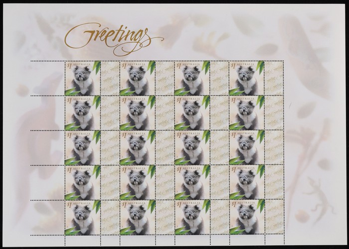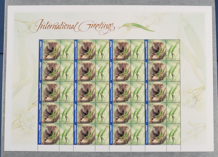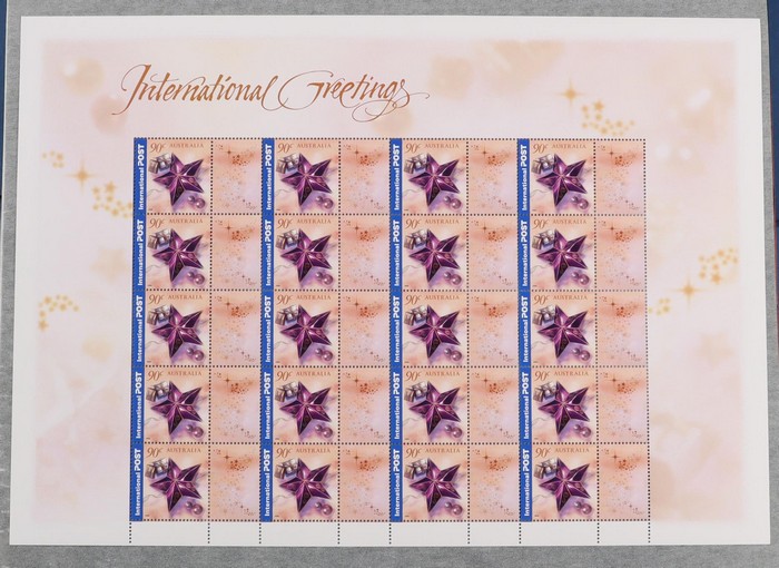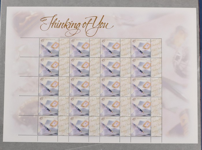 (2 of ea, 5 diff), plus 2000 Nature & Nation 45c Rainforest, Globe, Daisy, Sand/Sea, Roo/Flag & 2001 Christmas 40c & 80c. All in large & smaller format sheets of 20. SG 1972-76, 2136-37 cat £150. FV $172. (24 sheets) (Image1) (Image2)