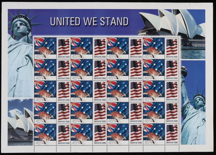 Stand Aust/USA $9 SES 45c Kangaroo & flag with USA flag tabs. VF fresh MNH. (Image1)