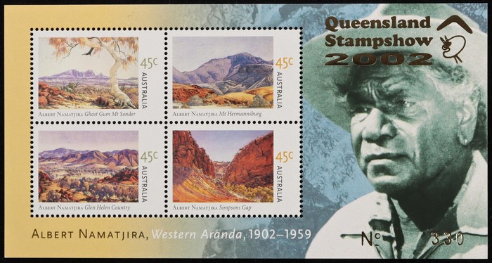 Namatjira $1.80 M/Sheet opt Qld Stamp Show, numbered. VF fresh MNH. SG MS2208(var). Retail $40. (Image1)