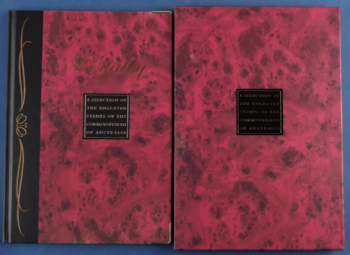 3) Royalty - A Selection of Engraved Stamps of the Commonwealth of Australia De Luxe PO Book with slipcase, with 32 diff die proofs in red inc 1913 KGV Engraved 1d, 1913 KGV 2d, 1935 Silver Jubilee 3d, 1937 QE 1d, 1937 KGVI 2d, 1938 Robes 5/- & 10/-,