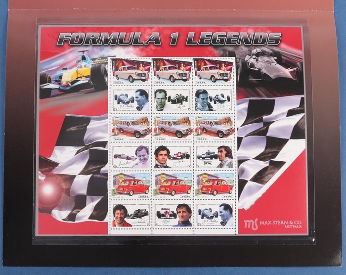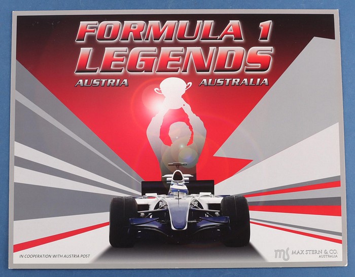Austrian Formula 1 Champions joint issued by Max Stern inc Driving through the years sheetlet with Austrian & Australian F1 drivers, & Austrian sheetlet of 8. FV $4.50, + Austria €5.95. (Image1) (Image2)