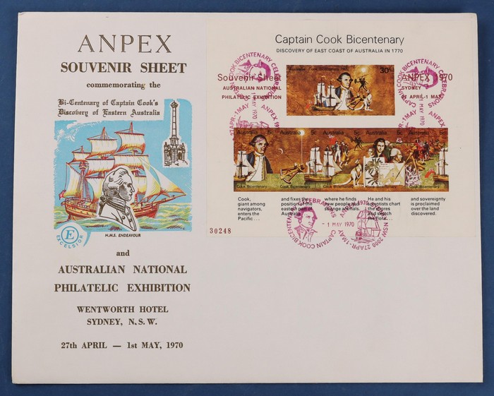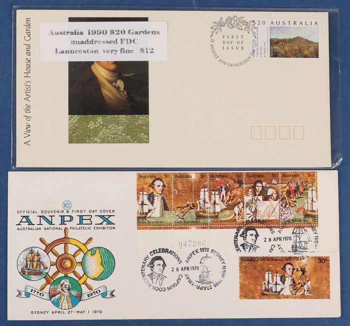 225 image1940-2000s FDCs inc 1938 NSW Sesqui-Centenary 1940 AIF, 50s-65 (about 100) inc 1963 4/- Tasman decimal range inc 1970 ANPEX Cook M/S (3), inc 2 loose leaf albums of pre-decimal covers & Sigma covers (20+), huge lot of Maxi Cards, PSE, various 100s of PPC, other countries noted 1938 Belgium International, 1950 Vatican, 1935 Western Samoa plus Aust PNC (3) & rare 1970 Cook in case. Sold on behalf of Mary MacKIllop Charity. Sorted by size but not checked in details. Weight 8kg. (2500+) (Image1) (Image2) (Image3) (Image4) (Image5) (Image6) (Image7) (Image8) (Image9) (Image10) (Image11) (Image12)