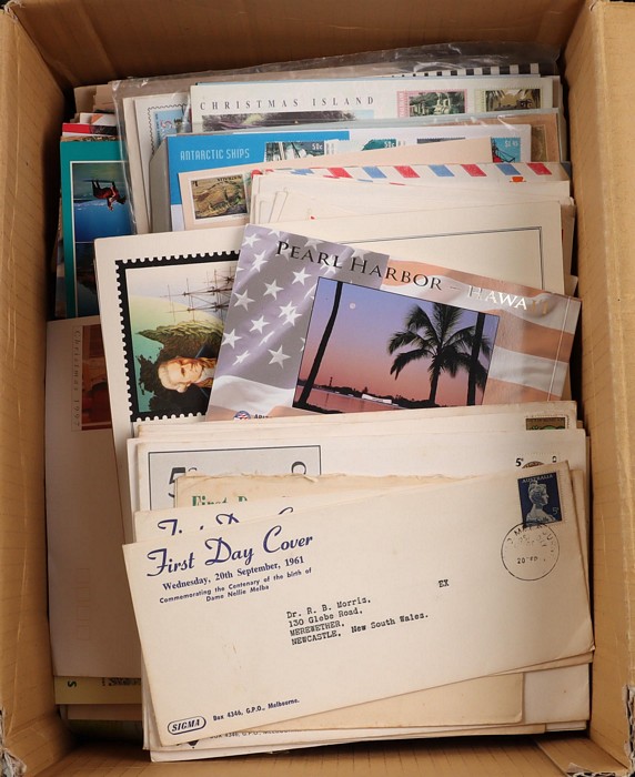 224 image1940-2000s FDCs & other covers inc 1940 AIF, 1938 1d Queen & 2d KGVI & others inc several albums, decimals inc 1970 ANPEX Cook M/S (2), also 1940s Censored Egyptian Military cover, Tin Can Mail cover, Pitcairn Islands, some NZ Health covers, some Maxi Cards, PSEs, 1960-80s PCs range of decimal covers. Sold on behalf of Mary MacKillop Charity. Not checked in detail, as received from Vendor. Weight 14kg. (3500+) (Image1) (Image2) (Image3) (Image4) (Image5) (Image6) (Image7) (Image8) (Image9) (Image10) (Image11) (Image12) (Image13)