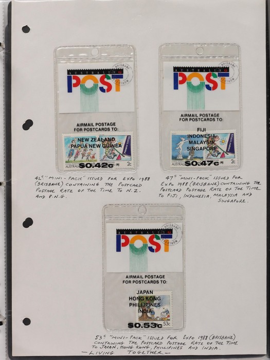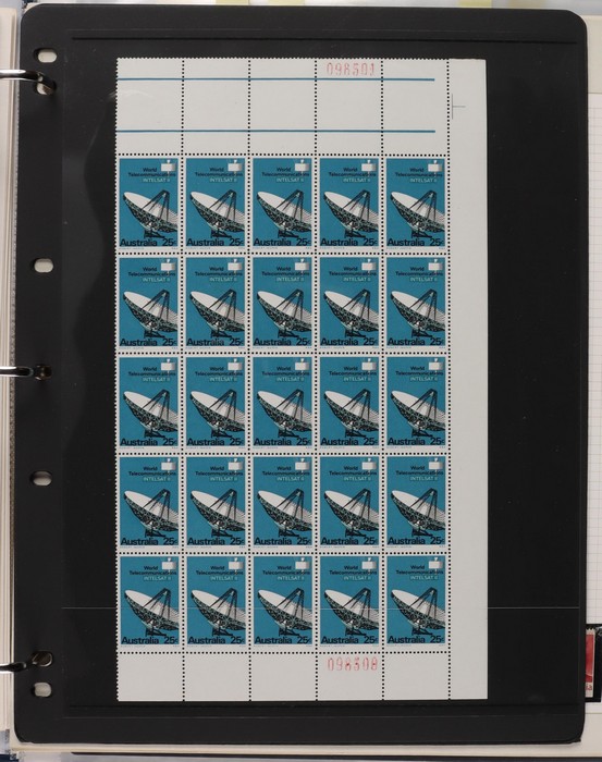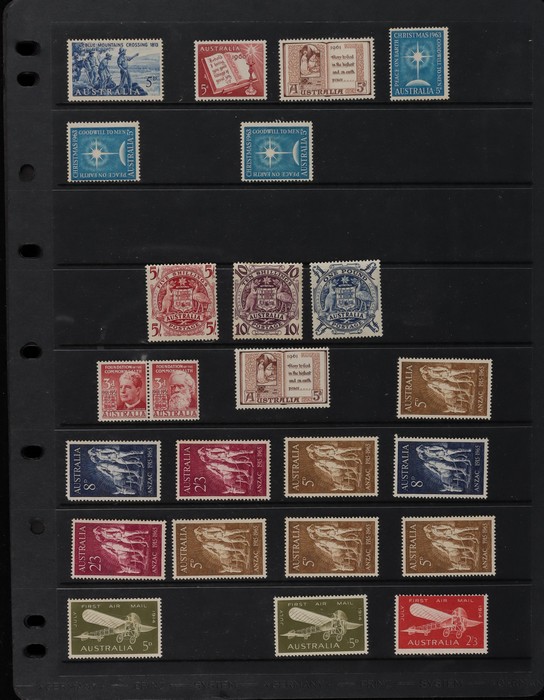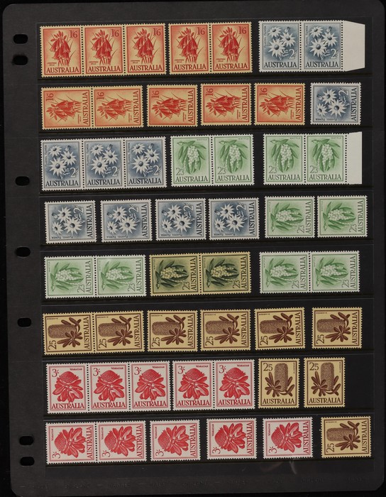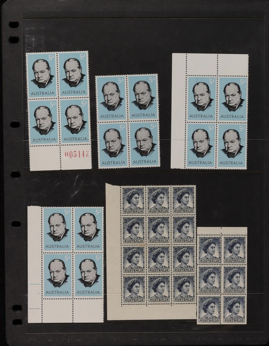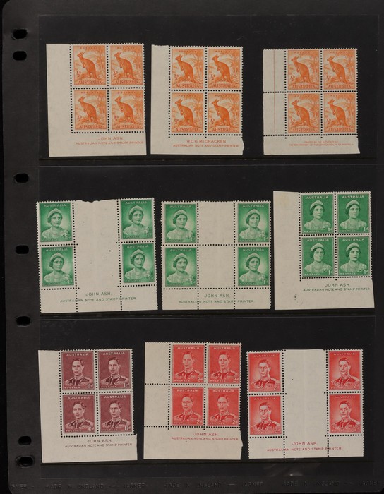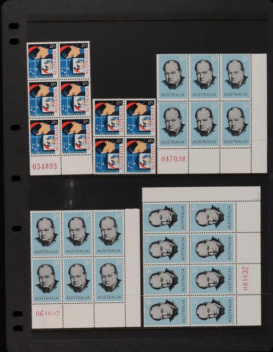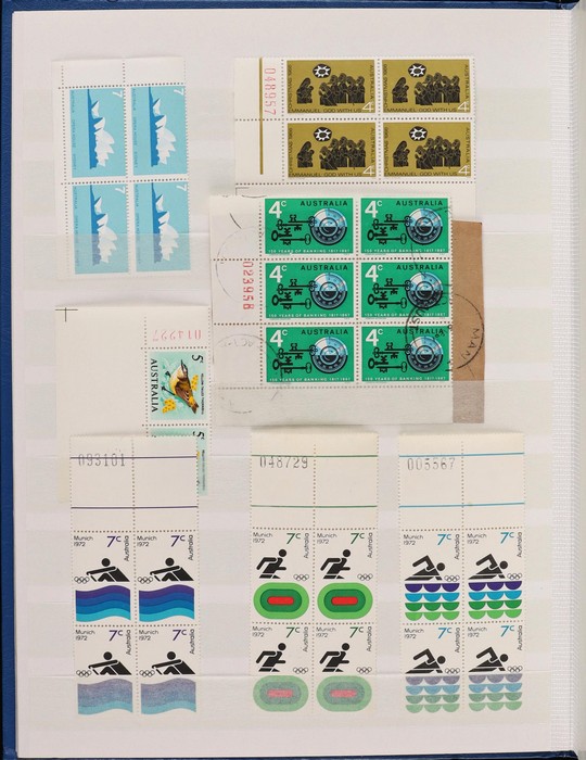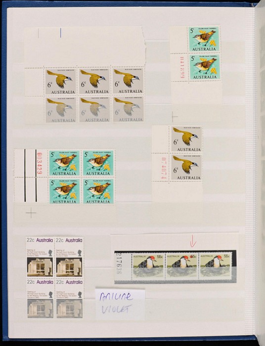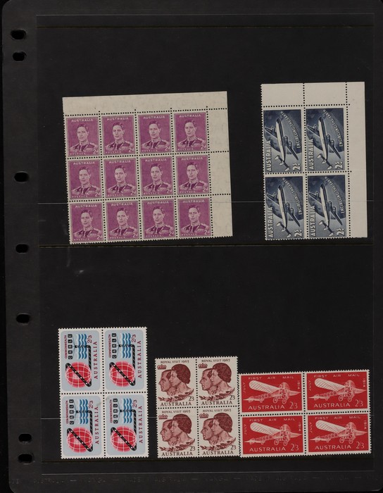 231 image1950s-90s semi-specialised collection on leaves & in hagners with 1954-1965 Pre-Decimal blks & 1965 Christmas sheet n numbers in 1954 Red Cross 'Double?Cross' variety in LR cnr blk of 6.?1966-1975 Blocks & Multiples MNH/M/CTO in 1968 Soil/Medical 5c?She of 100, 1968 Intelsat LR cnr blk of 25, 1971 Civil 7c Sturt's Desert Pea Error 'Missing Buff & misplaced green' vert pr MNH (ACSC 536ce at $ 600). 1971 Christmas 7c blks of 25 (2), one with 'Retouch in green through A of AUST' variety, other 'Break in 1st Wiseman's Crown', (ACSC cat $100 ea). 1979 Parramatta, Bexley & Rockdale Port-Office football bklts (cat $680).?1980 High Court 22c 'Aniline print upper marginal blk of 4 (ACSC cat $ 80). 1986 Platypus Frama printing errors (2). 1986 Christmas 30c set of the 5 diff gutter blks (cat $ 80).?1988 Brisbane Expo vending machine 'Booklet' (5 diff) & now hard to find!! 1993 Counter Printed Stamps 'Painting with Candlesticks' UNISSUED design trials in black with 45c, $1 & NVI set of singles & vert pr (Retail $ 900). Plus much more in 1975 Science Study, 1978 Bird sheet & 1996 Indonesia Joint Issue bklts (2, cat $200). Mixed M/CTO/MNH, total ACSC cat / retail $3400. (100s) (Image1) (Image2) (Image3) (Image4) (Image5) (Image6) (Image7) (Image8) (Image9) (Image10) (Image11) (Image12) (Image13) (Image14) (Image15) (Image16) (Image17) (Image18) (Image19)