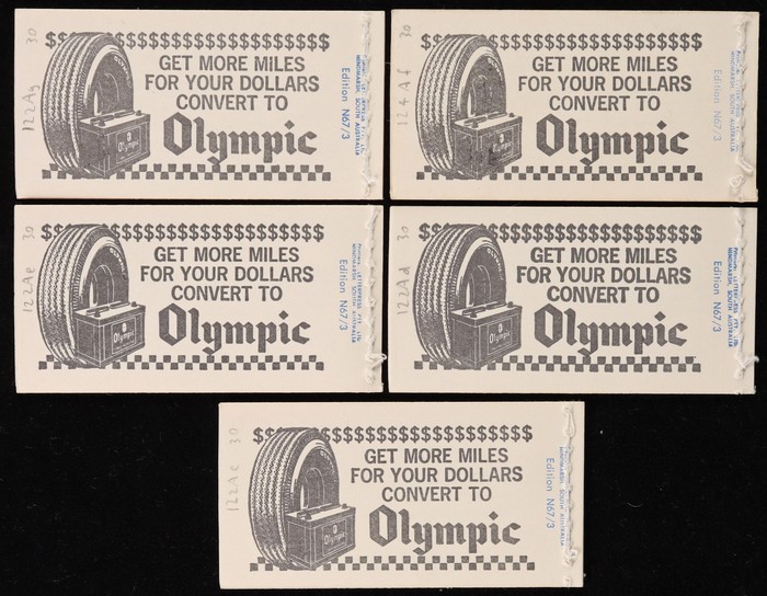 permanent cover, edition N67/3 with 5 diff tabs, & matching adverts on 4. VF MNH. SG SB41a. Pfr B122Ac-e, B122Ag, & B124Af cat $150. (5). (Image1) (Image2)