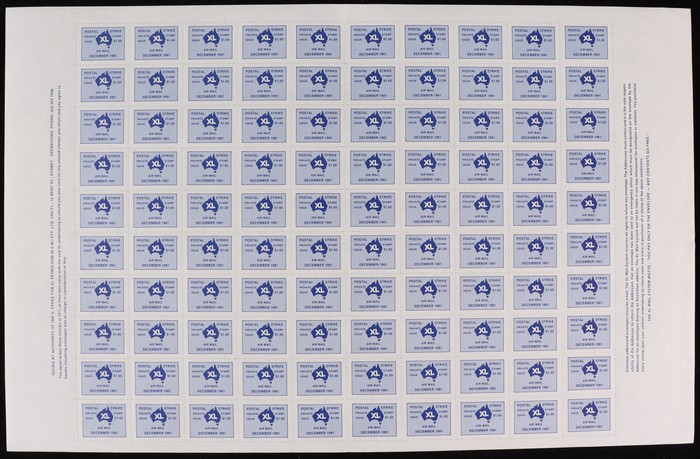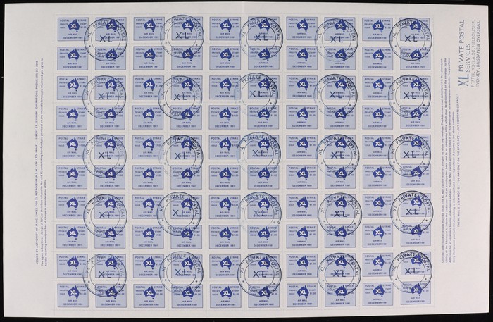 XL Petroleum $1 blue private postal service sheet of 100. VF fresh CTO 'XL Private Postal Service'. Retail $5 ea = $500. (Image1)