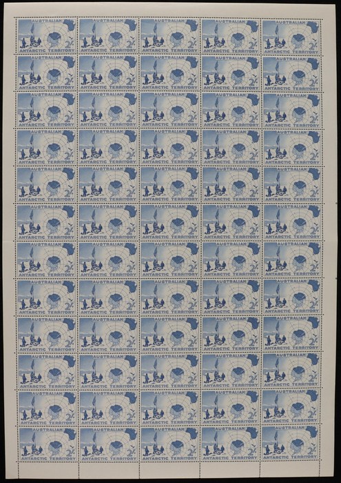 blue, sheet of 60 with perf-pips at right. VF fresh MNH, few gum bends. SG 1. ACSC AAT1/ba cat $750. (6) (Image1)
