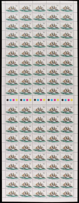 green, part sheet of 100. VF MNH, 4 stamps minor tones. SG 7. ACSC AAT 7 cat $250. (Image1)