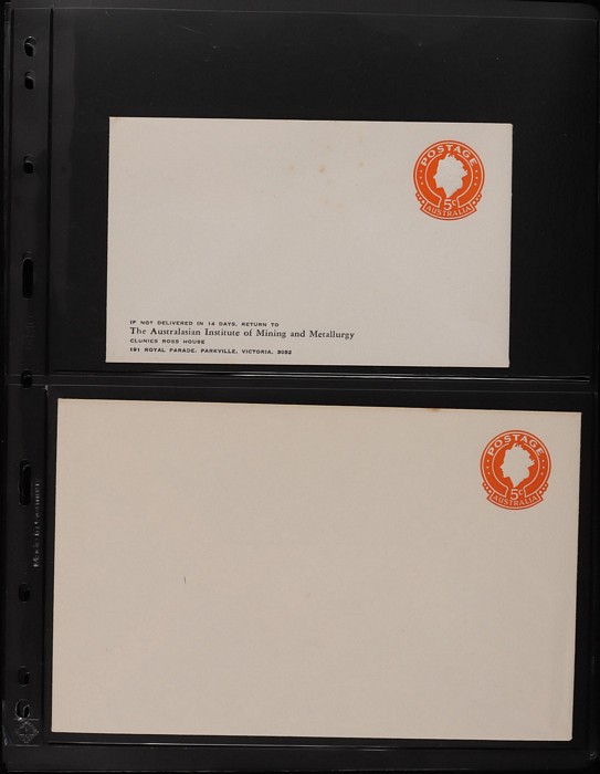 red (2, $200), KGVI 1½d green (2, $150), 2½d red, round die 3d green. QEII 3d green (2), 3½d orange & small die, 5d dark blue & light blue (6), 4c red (4), 5c orange (6), 7c mauve (2) & 18c. Mostly F-VF UN. ACSC cat $4750 for