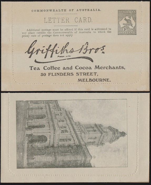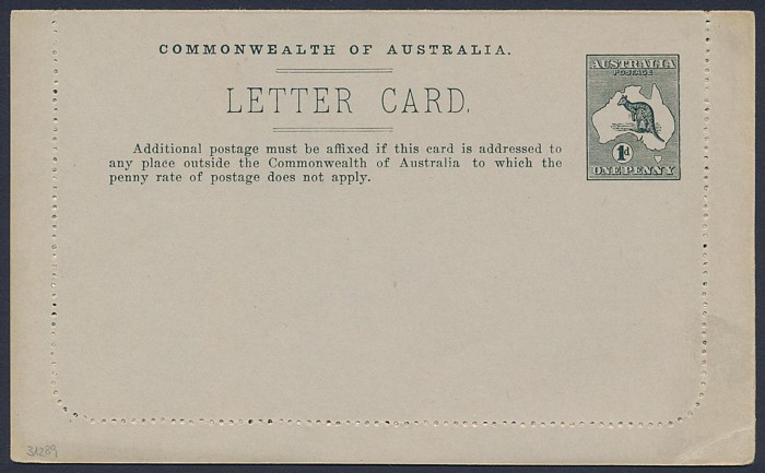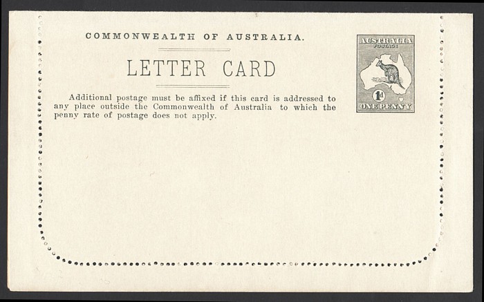Kangaroo 1d grey, original die, view Central Rly Stn in rectangle. VF UN, front sl aging stripes & with printed address, view side superb. ACSC LC14(32D) cat $250.
