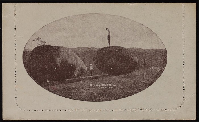 Kangaroo 1d black original die, view The Two Brothers unframed oval w/o sky. VFU with margin, ' Cordalba Qld' cds. ASCS LC14(135D) cat $50+, plus premium with margin.
