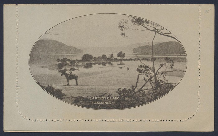 Kangaroo 1d black, die 2, view Lake St Clair Horseman. Superb fresh UN. ACSC LC16(068) cat $175. (Image1) (Image2)