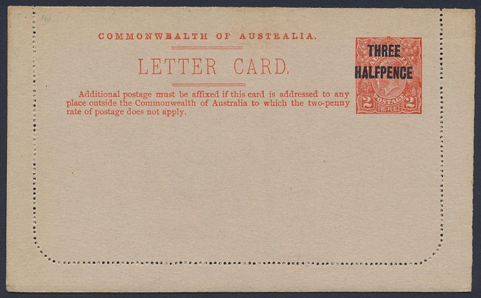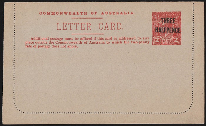 KGV 1½d on 2d red, view Hawkesbury River. F-VF UN, suntanned area on text side. ACSC LC54(62) cat $300. (Image1) (Image2)