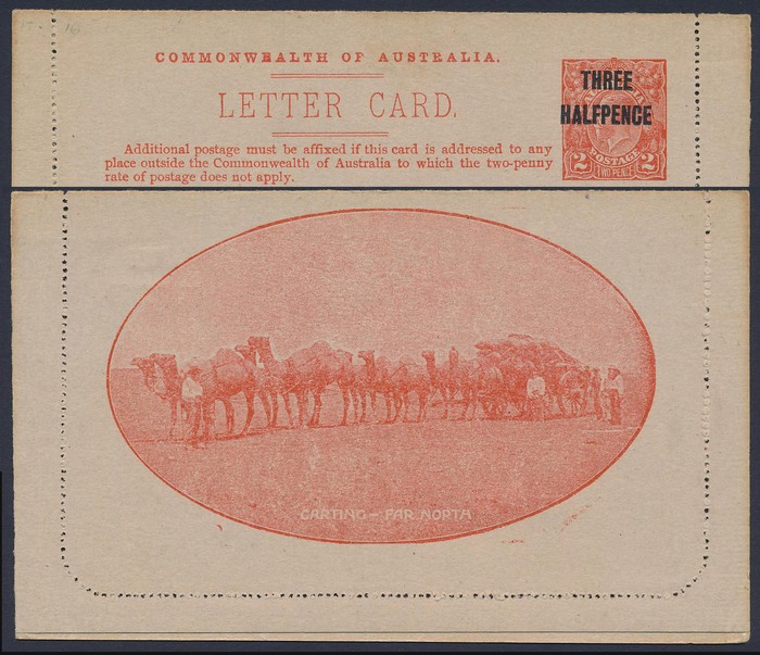 KGV 1½d on 2d red, view Carting - Far North camels, variety 'cracked plate'. Superb UN. ACSC LC54(29D) cat $400. (P) (Image1) (Image2)