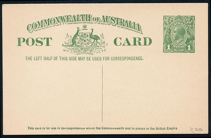 printed reverse collection with 1911 Coronation card of KGV, 1913 Kangaroo 1d red, 1916 KGV 1d red, Surch 1½d on KGV 1d red (4), 1½d brown (2 types), 1924 1d green (2), 1925 new design 1d green (8), same with Surch 1½d on 1d, UN