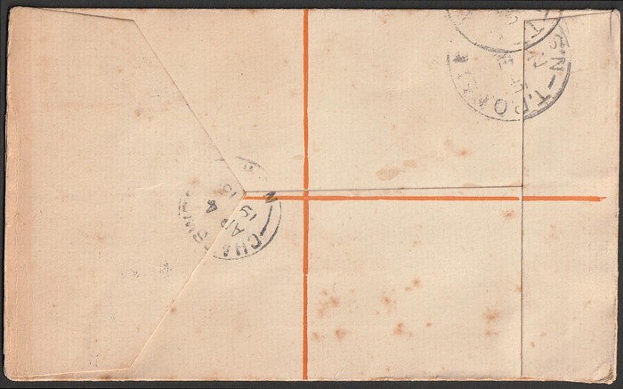 Envelope: 1916-20 KGV 4d orange, setting 2 with orange Star obliterator on old NSW stock. Superb fresh UN. ACSC RE7B cat $500. Rare so nice. (P) (Image1) (Image2)