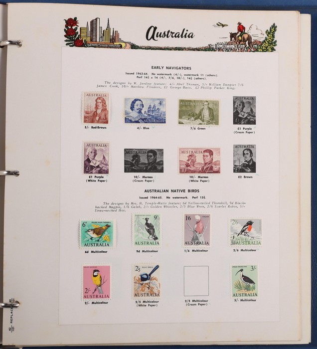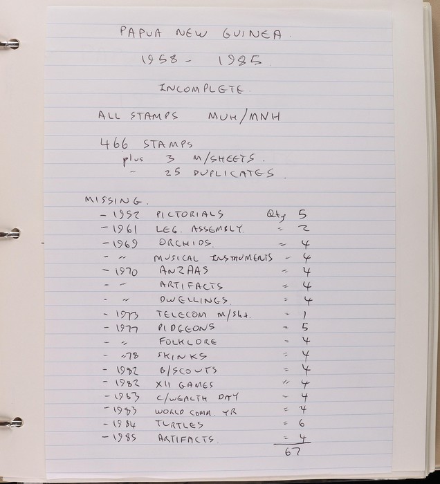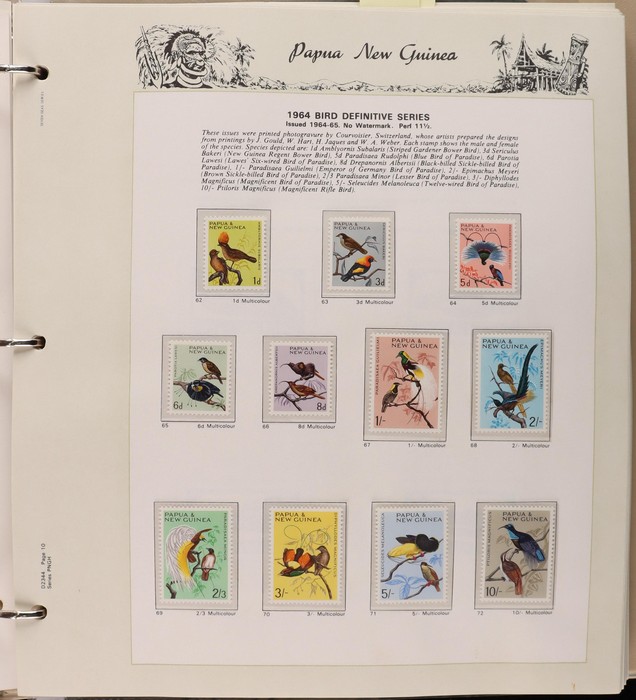 305 imageAustralian Territories 1960-84 in 2 VGC Seven Seas hingeless albums with Cocos & Keeling inc 1969 Defs to $1, 1979 Fish to $2, AAT 1957-85 inc 1966 Defs to $1, Norfolk Island inc 1960 Govt FU, 1966-84 inc 1970 Birds to $1, FV approx $130. Papua New Guinea 1958-85 inc 1964 Birds to 10/-, 1966 Butterflies to $2, 1968 Shells to $2 etc, FV approx 100Kina. Also small range of booklets inc Aust 1949 2/6 (B55 cat $75), 1953 3/6, 1967 50c, 1967 $1 etc, PNG 70c (3) etc. Many sets, all diff. Mainly F-VF MNH/M. ACSC booklets cat $150. Seven Seas pages replacement cost $200. FV combined say $200. (900+, 10 M/S) (Image1) (Image2) (Image3) (Image4) (Image5) (Image6) (Image7) (Image8) (Image9) (Image10) (Image11)