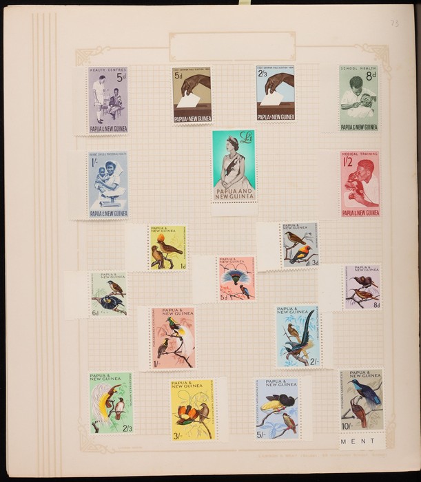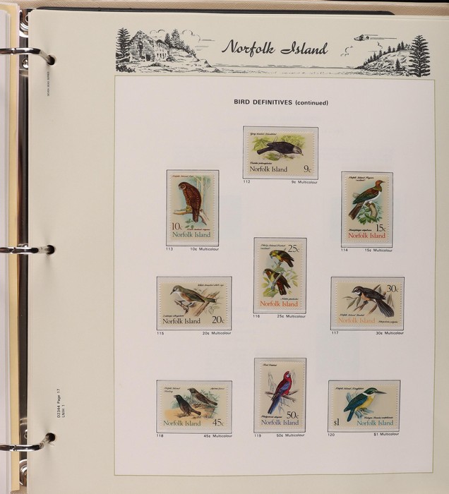 308 imageAustralian Territories collection in springback album with 1946 'BCOF JAPAN' opt set of 7 M (retail $180). AAT 1957-86 (155) inc 1966 Pics to $1. Christmas Is 1958-76 (90) inc 1958 QEII & 1968 Fish sets to $1. Cocos Is 1963-79 (60) inc 1963 Pics to 2/3 M. Norfolk Is (285) to 1979 inc 1947 Ball Bay to 2/- blue, 1953 Defs to 5/- brown Bridge, 1960 Pics to 10/- Bird, 1966 dec opt set, 1969 Birds to $1 & others mostly F-VFM. PNG (700) to 1979 inc 1952 Defs to £1 Fisherman M & U, 1963 Pics to QEII £1 M & U, 1964 Birds to 10/-, & 1966-79 decimal Pic/Commem sets near comp. F-VFM. (1300) (Image1) (Image2) (Image3) (Image4) (Image5) (Image6) (Image7) (Image8) (Image9) (Image10) (Image11) (Image12) (Image13) (Image14) (Image15) (Image16) (Image17) (Image18)