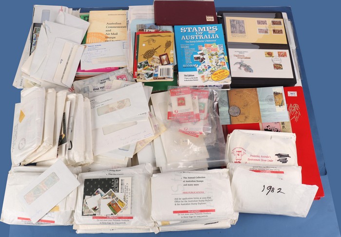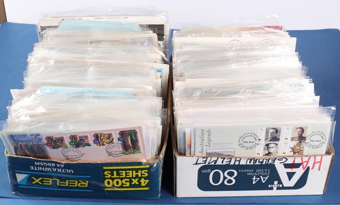 321 Collection/accumulation in 2 cartons 1970s-c2000. Inc extensive PO Packs & some MNH sets, Bi-Cent issues etc FV $580+. Also FDCs & stationery late 1950s-2000 with strength in 1990s, few PNCs, many 100s.