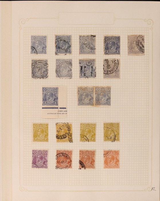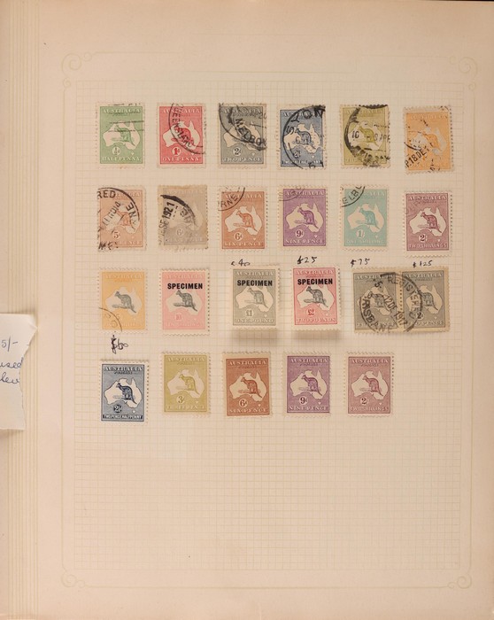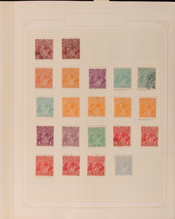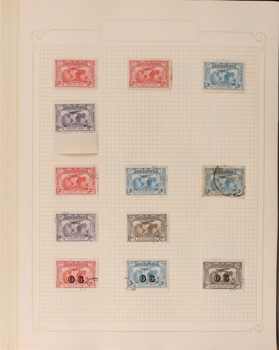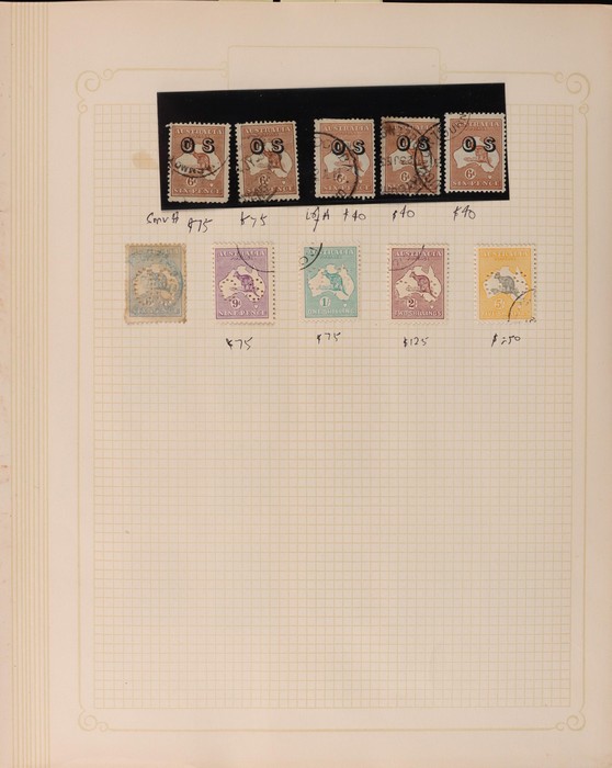 322 imageCollection 1913-65 in springback binder Mint & Used inc Kangaroos various wmks to 5/-, plus 10/- CofA, £1 grey 3rd type D, £2 SM opt Specimen type D M/MNH, perf OS SM wmk 9d to 5/- CTO, KGV Heads various wmks to 1/4 CofA M/MLH, also CTO selection inc 4½d violet Die II, OS opts to 5d CTO, 1914 6d Kookaburra CTO, 1928 Kookaburra M/Sheet, 1931 Kingsford Smith M/U inc 2d, 3d opt OS CTO, 1932 5/- Bridge CTO, other 1930s Commems M/U, later issues inc Navigators part set to £2 M/MLH, various others F/VF. Retail $3800. (1150) (P) (Image1) (Image2) (Image3) (Image4) (Image5) (Image6) (Image7) (Image8) (Image9) (Image10) (Image11) (Image12)