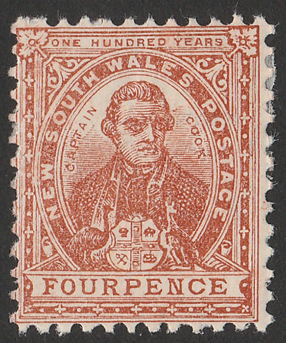 Cook 4d orange-brown, wmk Crown/NSW (w65). F-VF fresh M. ACSC N29B cat $60. SG 317 cat £55. (Image1)