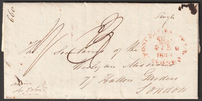with 'POST PAID SHIP LETTER 9 MR 9 1833 SYDNEY' red crown oval pmk. To London with b/s of 'India Letter Brighton' boxed cachet. (Image1) (Image2)