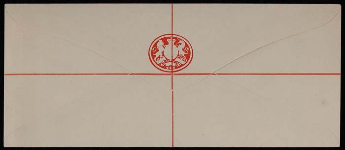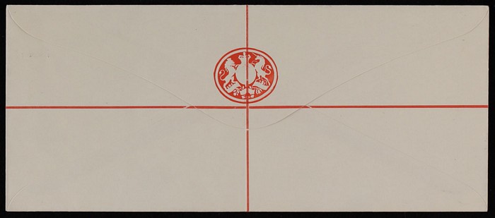 3485 imageRegistered Official Envelope: 1891 Centennial QV 6d red OS in die, pale cream stock, 59mm flap with seal, opt SPECIMEN. Superb fresh UN, light centre fold. (Image1) (Image2)