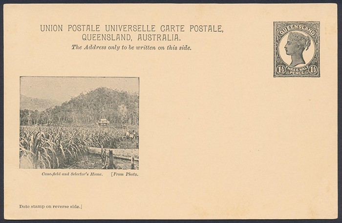 3559 imagePostcard: 1898 QV 1½d black view Cane-field & Selector's Home. Superb fresh UN. H&G 11. (P) (Image1)