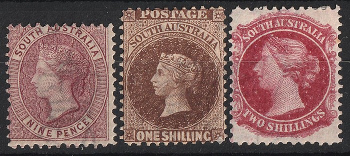opts all wmk crown SA inc 1868 QV 6d blue, plus offset variety. 1868 QV 9d, plus 2 prs, 1 with part sheet wmk. 1868 QV 2/-, plus pr & wmk inverted. 1868 QV 1d green, plus wmk inverted & 2d orange. 1883-99 QV ½d-6d, plus 3d wmk inverted & 4d &