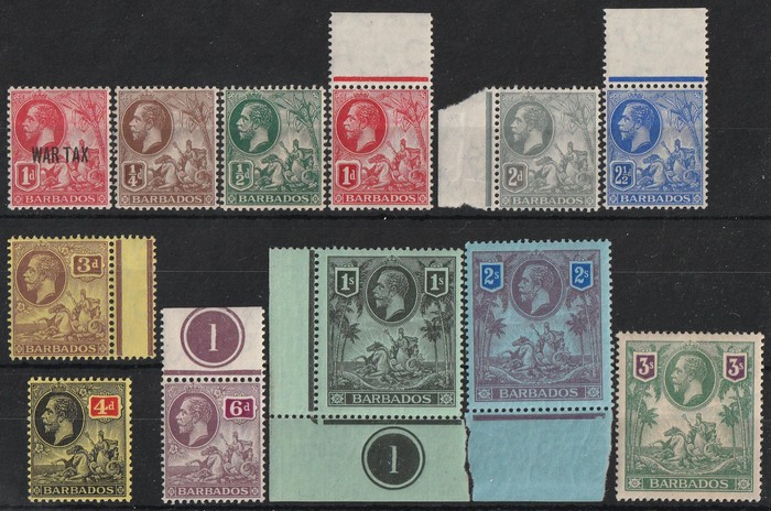Seahorses set ¼d to 3/-,, plus 1917-18 'WAR TAX' opt KGV 1d. VF fresh MNH. Scott 116-126 & MR1 cat US$261 for M. SG 170-180 & 197 cat £227 for M, should be at least double, £454 MNH. (12) (P) (Image1)