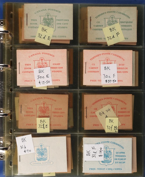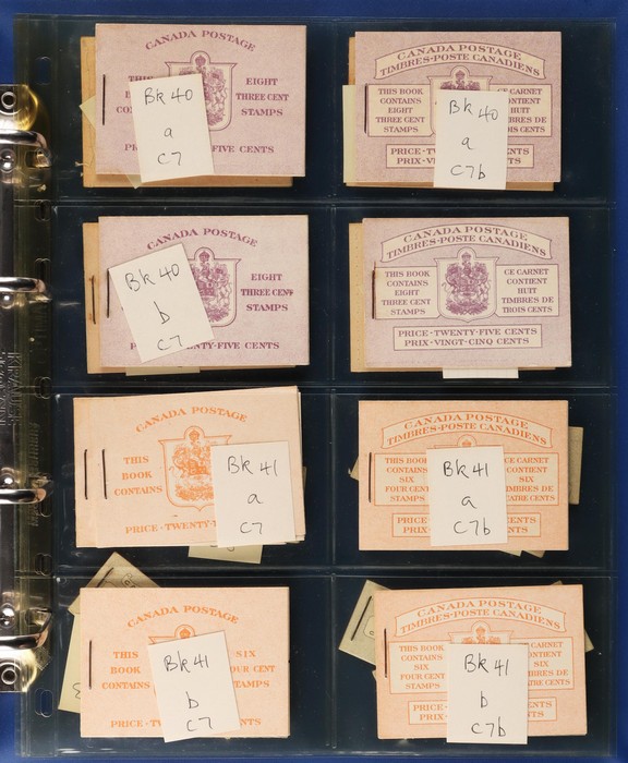 booklet collection in Lighthouse booklet album with Unitrade number Bk28bE & F, 28cE, 28fE, 29cE & F, 30cE & F, 31bE & F, 32dE & F, 32eE & Bi, 33aE, 34aE & F, 34cE, 34dF, 34bF, 34bF, 35bE & F, 35cE, 36fE, 36hE, 37eF, 38aE & Bi, 38bE, 39bE, 40aE & Bi,