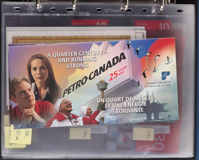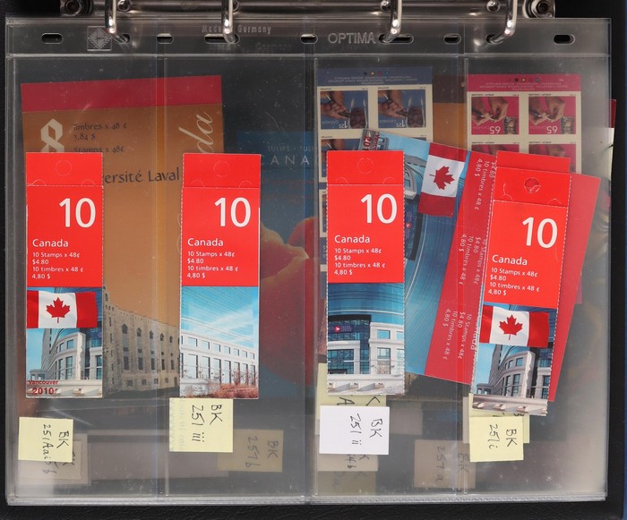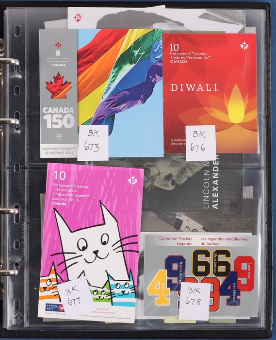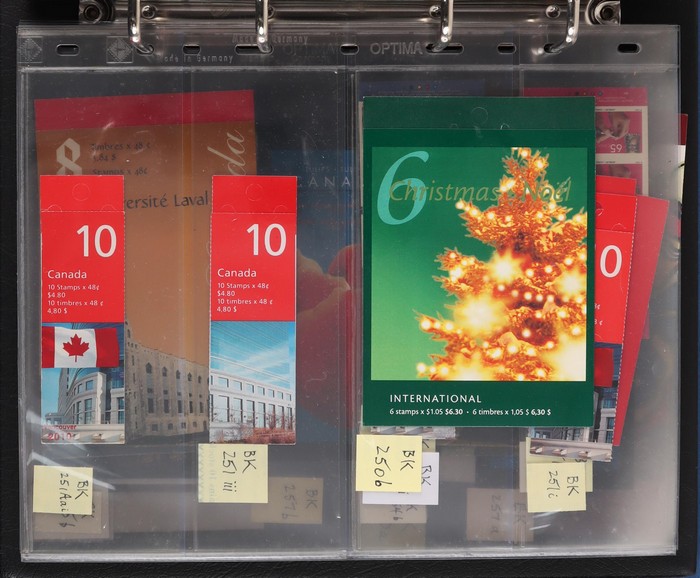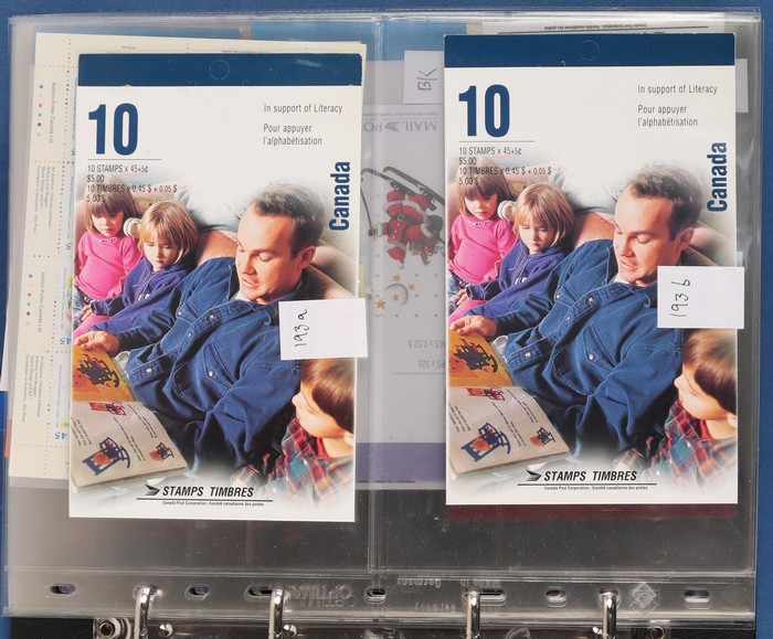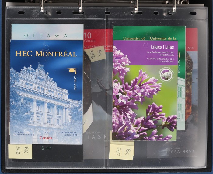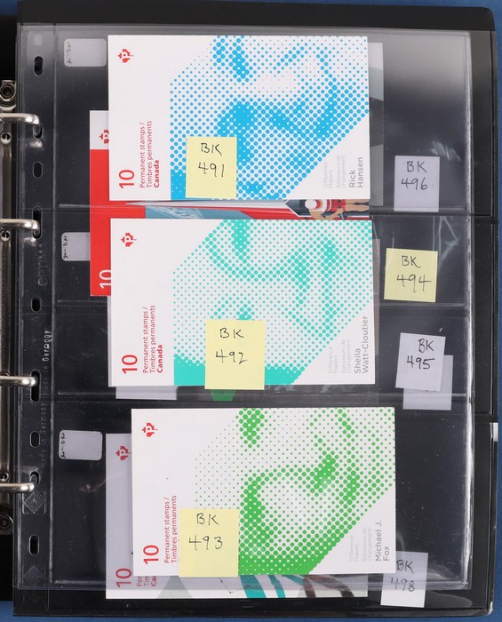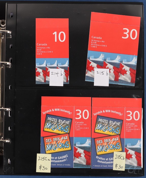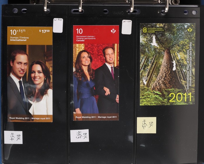 $2050+ permanent stamp booklet stamps 1450 x $1.24 = $1800, total FV C$3800+ = A$4200+. FWH not included in valuation. New binders & pages retail $500+. (550+ booklets)