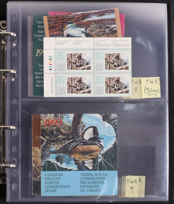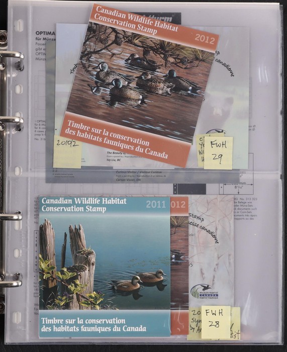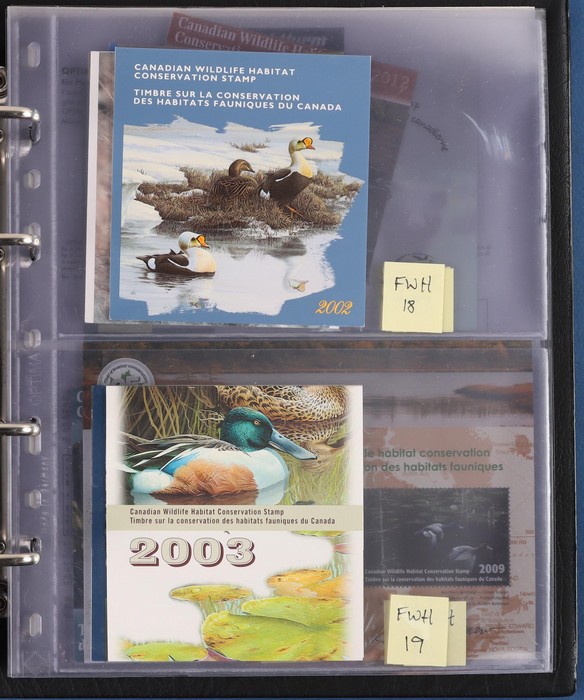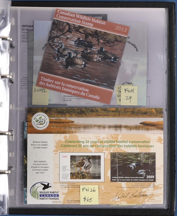 comprehensive booklet collection in 4 Lighthouse booklet binders with slipcases inc SB 193-722 with some printing varieties. Appear fairly comp. Also small collection of Canadian Wildlife Conservation booklets FWH 1-29, some signed by artists. VF. FV