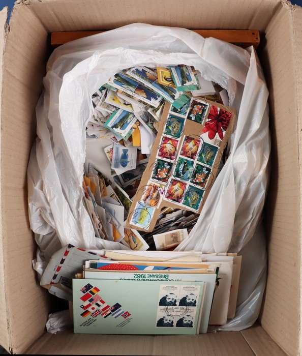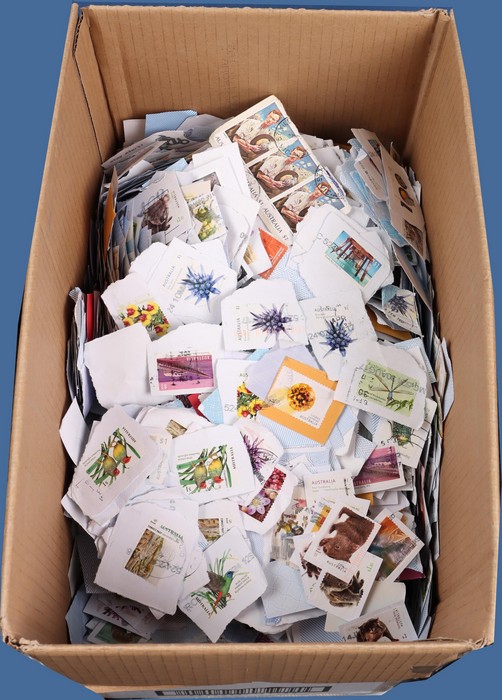 409 imageKiloware: 1970-2000s Charity lot Australia/World on close-clipped single paper & off-paper with some pre-decimals to modern with hagner values noted. Total weight 11kg. Few FDCs noted Hectorville SA & PO Packs $2 Paintings (4) etc. Also World 1890s-1970 collection (2000+) on loose leaf pages (200+) mainly 1910-50 period, most countries inc Europe, China inc 1964 15th Anniv strip of 3 CTO, Great Britain & British Empire, USA etc. Loose leaf album with Kangaroos to 2/-, KGV to 5d. Mounted picture frame of Nauru map surrounded by Nauru stamps. Interesting. Sold on behalf of OLSH Convent Charity. (10,000s) (Image1) (Image2) (Image3)