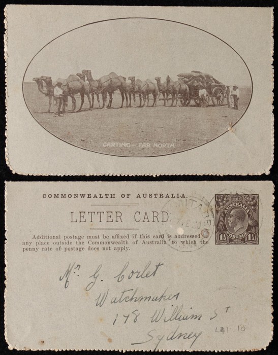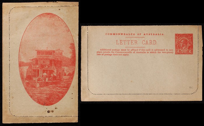 424 imagePostal Stationery - Lettercards: 1918-23 KGV 1½d & 2d range of types with LC41 Carting Far North, LC42 GPO Hobart, Mosman's Bay fresh UN & On the Murray, LC 43 Govt House Perth. 2d Orange LC45 Sydney Harbour, LC48 Burrinjack Onions (cat $1000, folded), Carting, GPO Hobart, Hawkesbury River, Mosman's Bay & Sydney Harbour. 2d red Govt House Sydney (addressed but UN) & On The Murray UN (view 94A cat $500) -both stuck. Mostly G-VF U/UN. ACSC cat $3200. Good starter lot for this interesting field. (14). (Image1) (Image2) (Image3) (Image4) (Image5) (Image6) (Image7) (Image8) (Image9) (Image10) (Image11) (Image12) (Image13) (Image14)