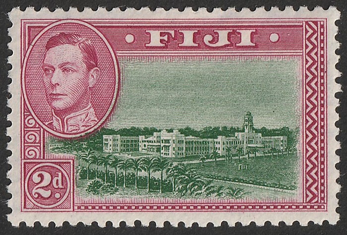 Offices 2d green & magenta, perf 12, variety 'scratched building'. VF fresh M. SG 255ab cat £120. (Image1)