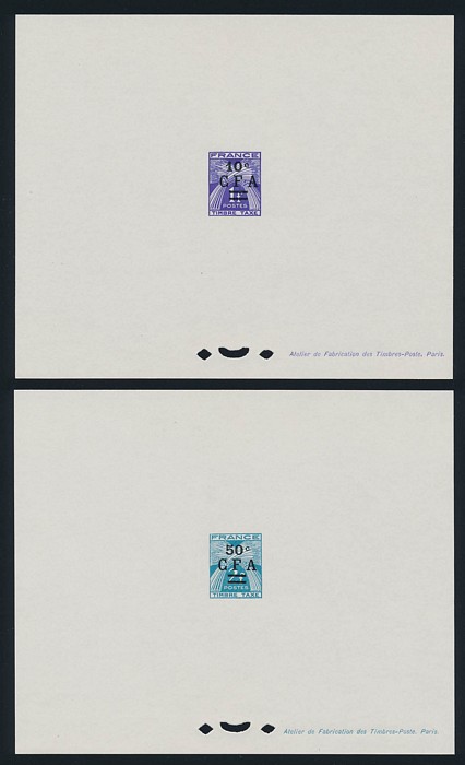 opt Postage Dues 10c-10Fr Epreuvre de Luxes, no 1950-53 issues. VF fresh UN as made, with tissue paper interleaves. SG D333-39(p), Yv T36-42EPL est cat €230. (7)