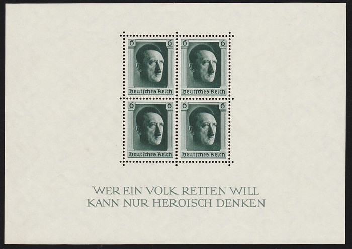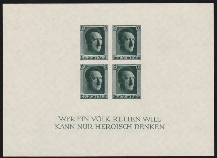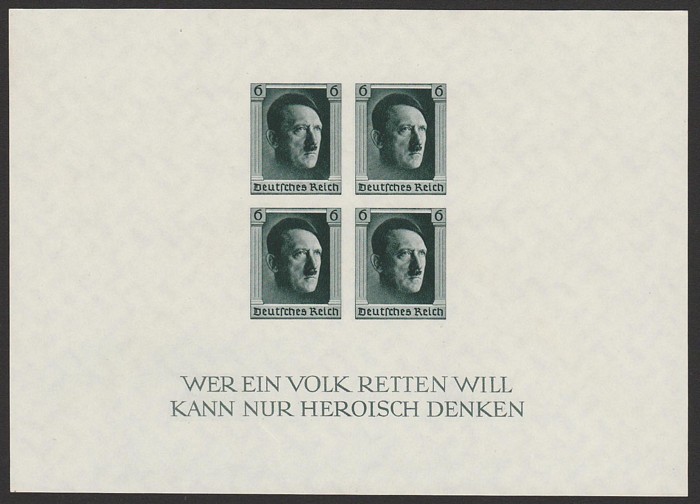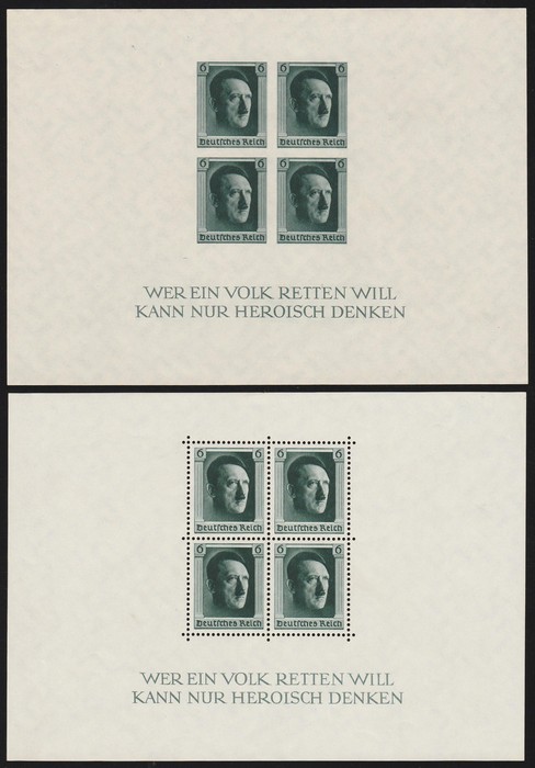 M/sheets with roul & opt margins, stamp opt Nurnberg in margins. Superb fresh MNH. Scott B106 cat US$240, SG MS 638 cat £400. Mi Blk 11 cat €320. (P) (Image1)
