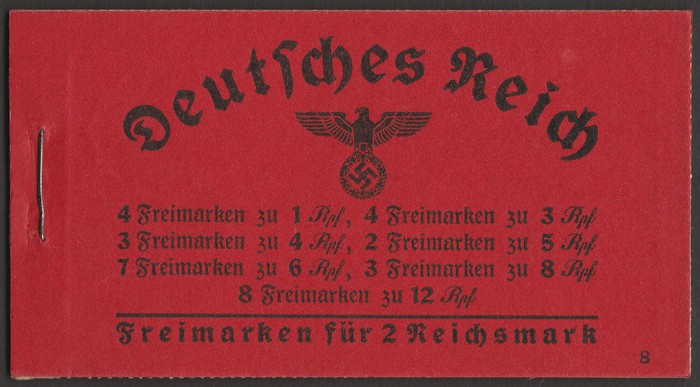 booklet 2RM code 8 with 1pf, 3pf, 4pf, 5pf, 6pf, 8pf & 12pf in 4 panes. VF MNH. SG SB41 cat £450. Mi MH37.4 cat €350. (Image1)