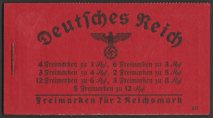 booklet 2RM code 10 with 1pf, 3pf, 4pf, 5pf, 6pf, 8pf & 12pf in 5 panes. VF fresh MNH. SG SB44 cat £325. MI MH33.2 cat €250. (Image1)
