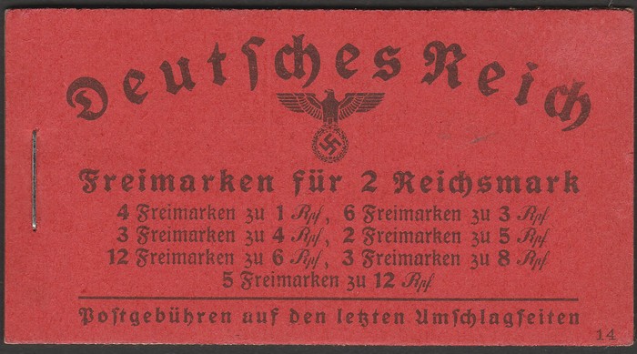 booklet 2RM, code 14 with 1pf, 2pf, 4pf, 5pf, 6pf, 7pf & 12pf in 5 panes. VF fresh MNH. SG SB46 cat £325. Mi MH39.4 cat €200. (Image1)