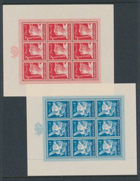 set blks of 8 with tabs, plus M/S perf & imperf, plus stamps from both M/S, 1943 President M/S perf & imperf also, plus stamps from both M/S, 1943 Legion Fund set perf & imperf, plus M/S perf & imperf. 1943 Zagreb M/S. 1943-44 President set to 100k.