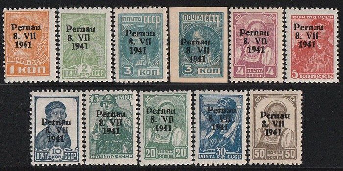 1941 Pernau type II opt Russia set 1k-50k inc 3k perf & imperf. VF fresh MNH. SG unlisted. Mi 1II-10II inc 3IIA & B cat €180. (11). (P) (Image1)