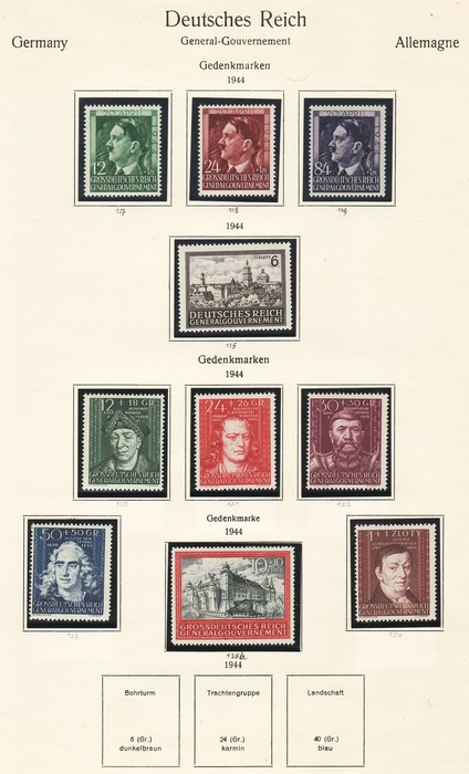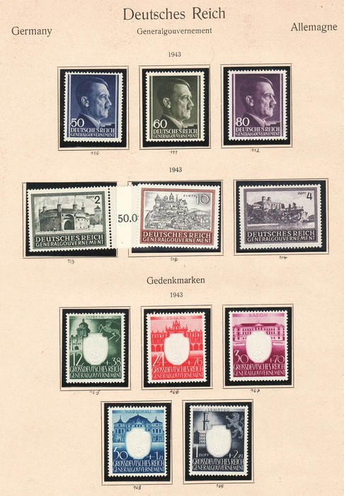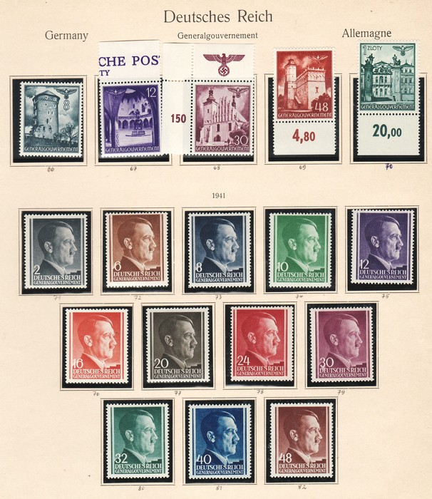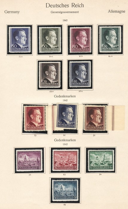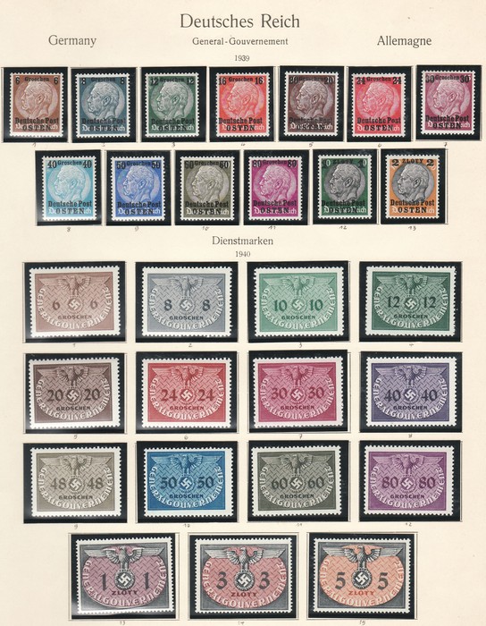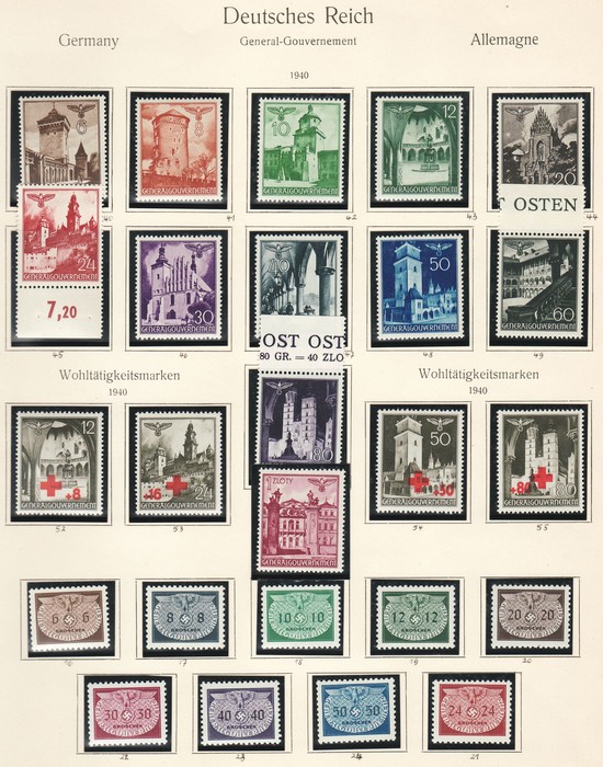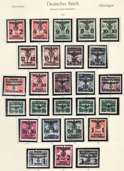 Govt: 1939-45 collection Used comp in special Fischer album inc 1939 opt Hindenburg set to 2z. 1940 Eagle & Swastika opt set to 3z inc 12g & 50g both types. 1941-41 Views set. 1941-44 Hitler set to 1.6z. 1944 5th Anniv 10z. 1940 Official set Large to