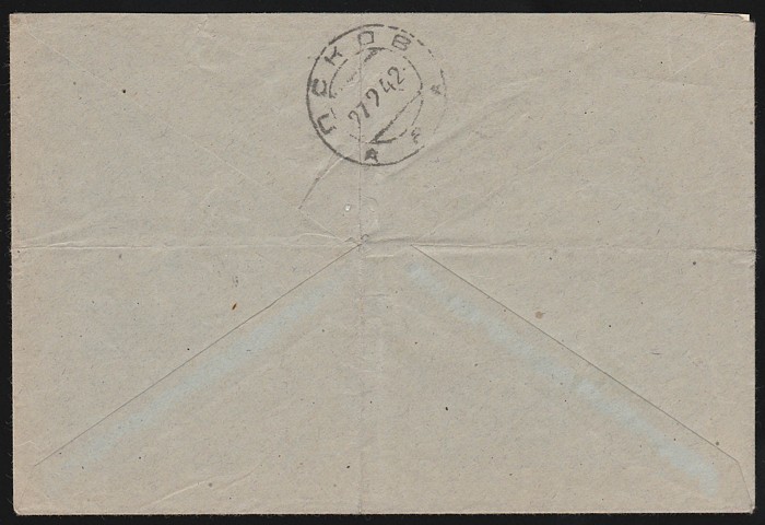 1941 Church & Arms set 20K red & 60K green, plus Madonna 60+40K brown, all on registered cover, tied by Pskov 27.2.42 cds. Mi 10y, 11y & 12a cat €180+. (P) (Image1)